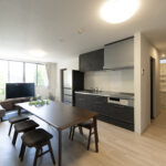 各階の共用部にそれぞれテレビが1つ、冷蔵庫が1つ、トイレが2つ、洗面台が2つ、洗濯機が2つ、浴室が1つあります。
